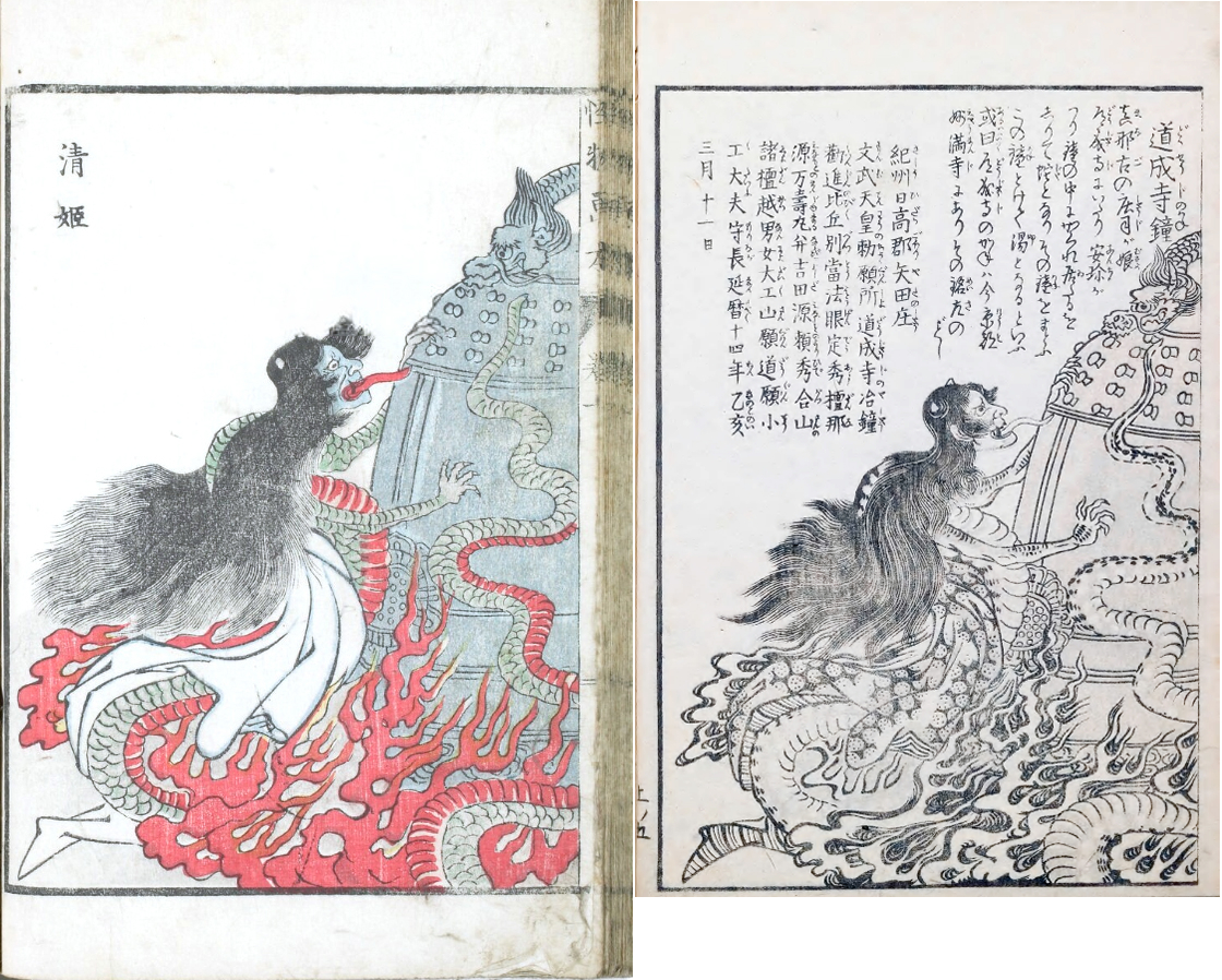 江戸妖怪界隈 : [30]「清姫」~パクり本(『怪物画本』)と本家(鳥山石燕の妖怪画)を比べてみたよヾ(๑╹◡╹)ノ"~