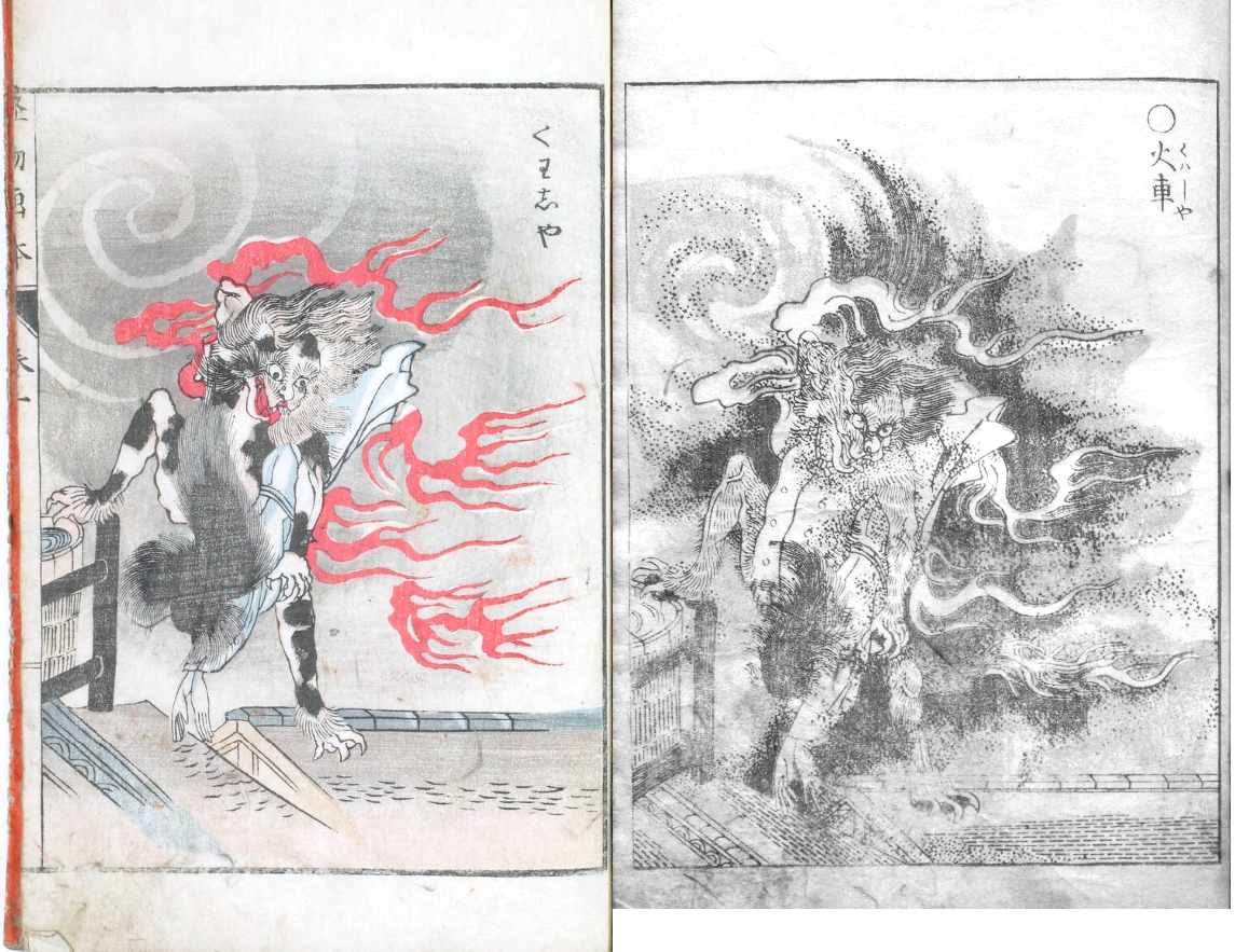 江戸妖怪界隈 : [37]「火車」~パクり本(『怪物画本』)と本家(鳥山石燕の妖怪画)を比べてみたよヾ(๑╹◡╹)ノ"~